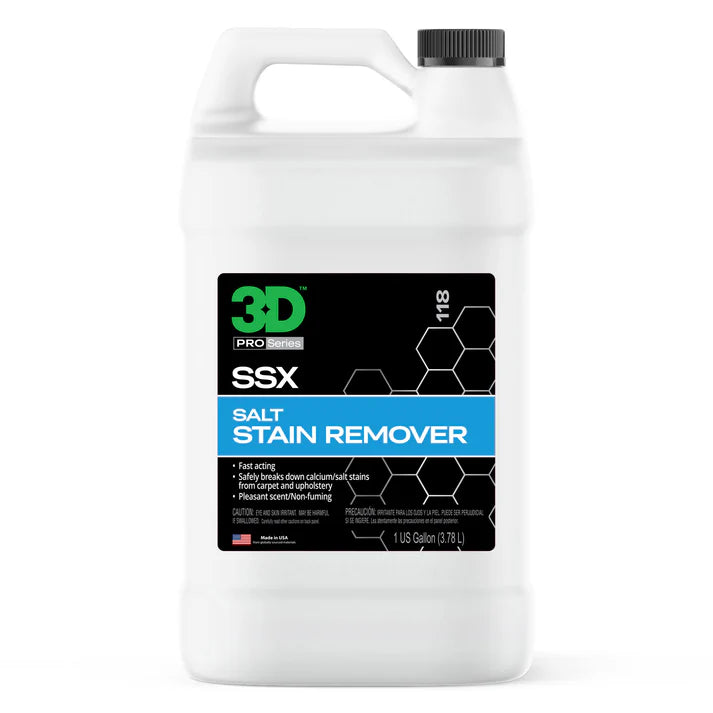 The 3D SSX Salt Stain Remover stands as the ultimate defense against winter's most persistent enemy - road salt damage. This specialized cleaner is formulated with advanced chemical technology that specifically targets and dissolves calcium and salt deposits that regular cleaners can't touch. Whether you're dealing with fresh salt stains or season-old residue, this powerful solution restores your car's interior to its original condition.