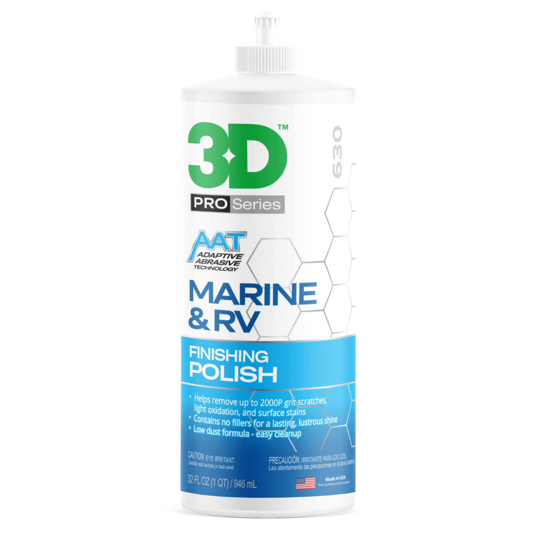 3D Marine & RV Finishing Polish is formulated with our Adaptive Abrasive Technology that helps to quickly remove minor imperfections, restoring gel coat finishes to a deep, rich shine. Its filler-free formula provides true gel coat correction.