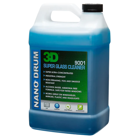 3D Super Glass Cleaner uses the most costly blend of ingredients, which separates it from all competing products, which for the most part use crude, simple ingredients and this is the reason you spend more time fighting the glass when trying to clean it as well as fighting the glass cleaner.